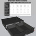 - Powder coated aluminum drawer and frame construction for maximum strength and storage space, but minimize weight