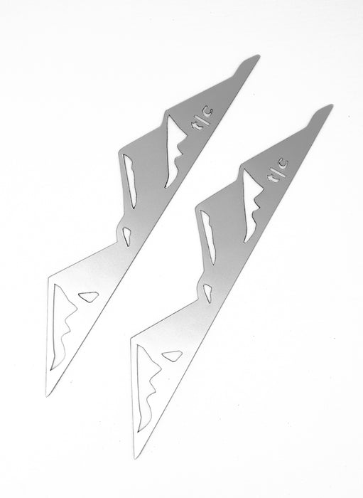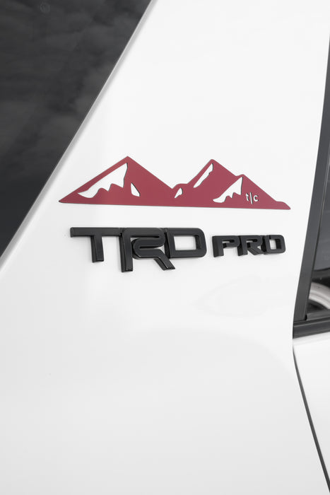 Finally, a universal mountain range magnet for all vehicle owners! Offered in matte black, metallic grey, and brilliant red! Designed for use over any steel surface you can think of. The mountain range is cut out to showcase your vehicle's paint color through the cutouts. Measured at approximately 2"x11".