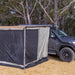 The Deluxe Awning room features a durable waterproof floor and its own separate ceiling, enhancing insulation from the sun. All 4-wall panels incorporate zipper operated access doors. The rear wall, located towards the vehicle, can be unzipped to provide access to the vehicle. The mesh pocket organize can be located on the right or left of the rear panel to house your magazines or personal items, helping everything have its place. Two zippered ports located in the top corners allow for power cable access and power cord guides are incorporated into the roof corners to keep cables tidy and safe. The 3 exterior walls are dual layers, featuring solid external panels, which can be zipped closed for protection and privacy or rolled up to reveal the internal mesh panels. The D shaped front mesh panel can be fully opened to reveal the natural setting while the side mesh incorporates zippers in the middle and base to accommodate entry and exit of the room.