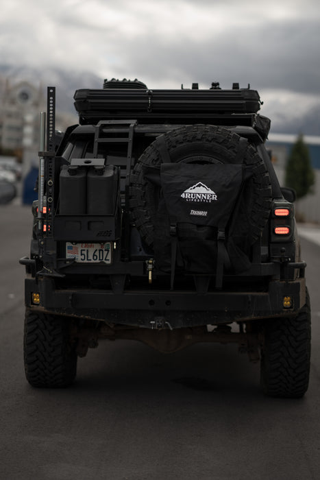 Trasharoo black spare tire trash bags let you stow your garbage while on the go, keeping your vehicle's interior clean and smelling fresh. A double-stitched strap and reinforced horizontal load straps secure up to 50 pounds. These are made with durable, high-quality denier nylon with heavy-duty stitching and drain holes take the worry out of leaks. An 8-inch zipper ensures easy access and included are drawstring mesh pockets and Molle straps to provide additional storage.