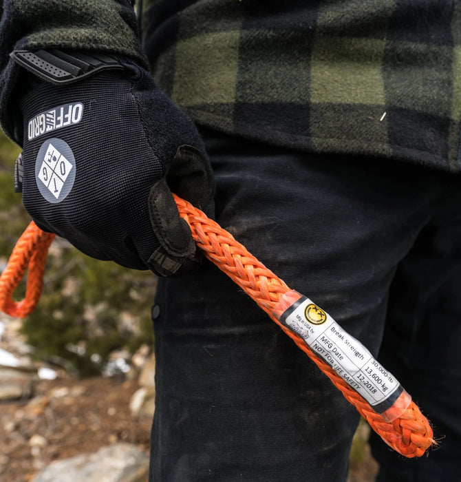 Made in the USA from synthetic winch line. MBS is 20,000lbs in straight pull configuration, with a WLL of 10,000lbs.