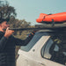 - The brackets can be mounted both parallel and perpendicular to the roof rack's slats giving the options to access the table from the side or rear of the vehicle.