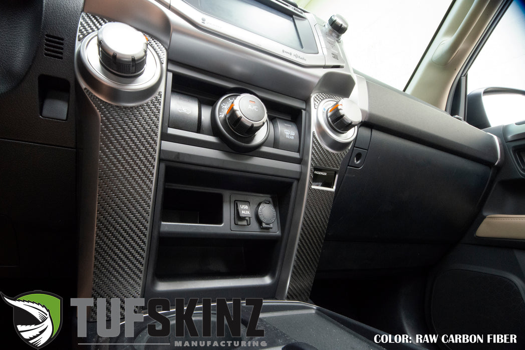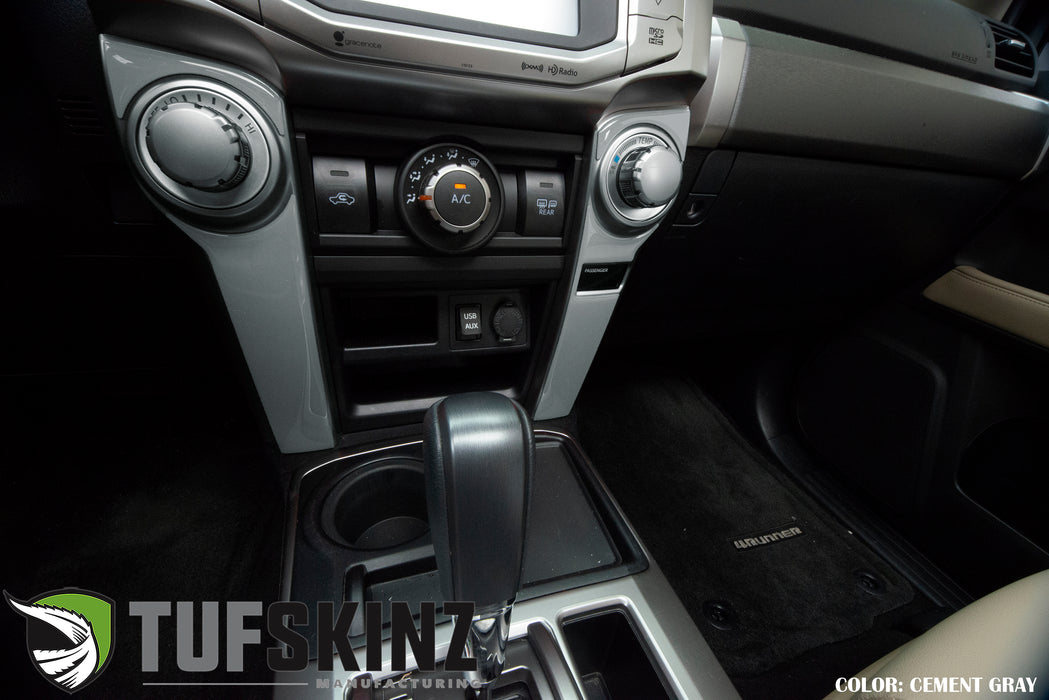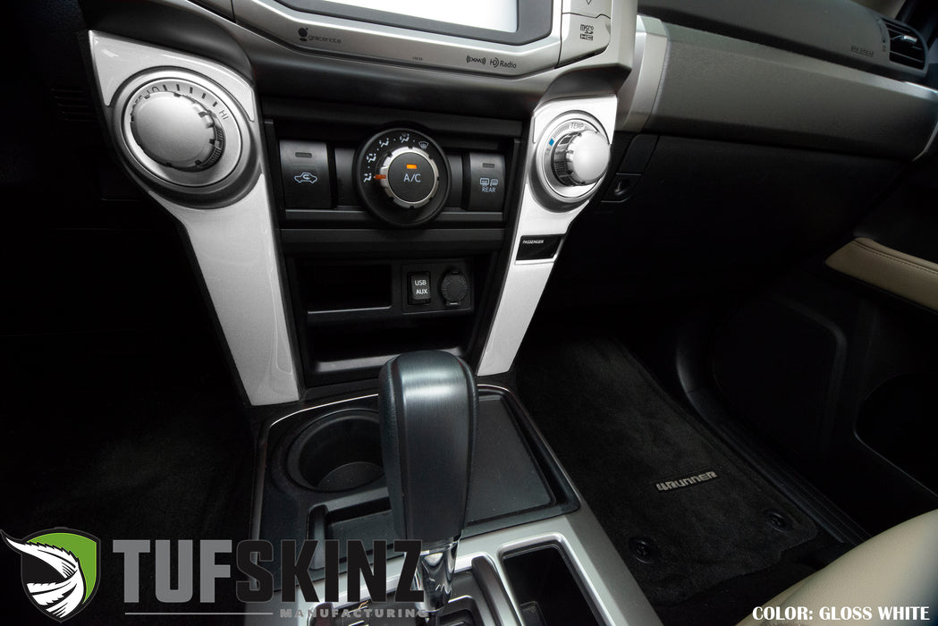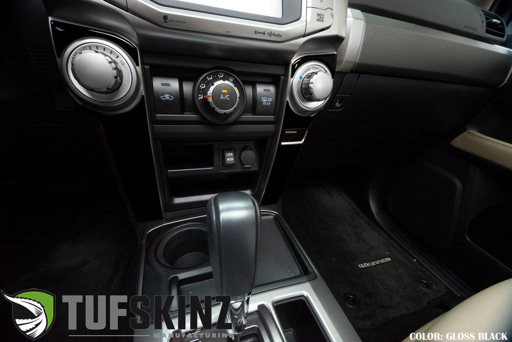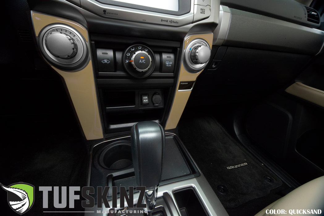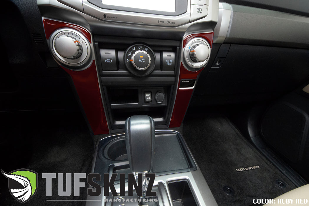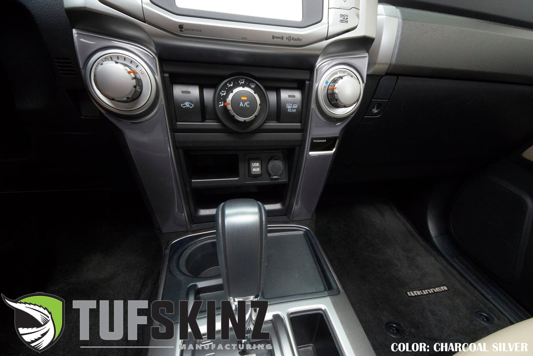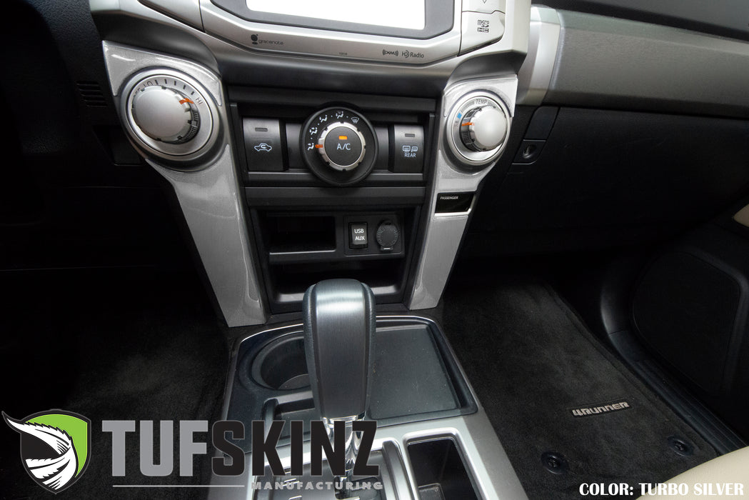 Add a new interior look to your Toyota 4Runner by installing TUFSKINZ Side of Climate Control Accents. This kit adds style and protection to your vehicle and is fittingly positioned on the sides of the climate control trim area.