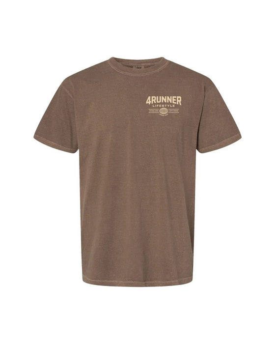 Embrace the spirit of adventure with the 4Runner Lifestyle Globe Shirt. A heavyweight 6 oz shirt with a more roomy fit. This shirt features a dyed brown color with a lot of character that builds a tasteful patina as it ages.