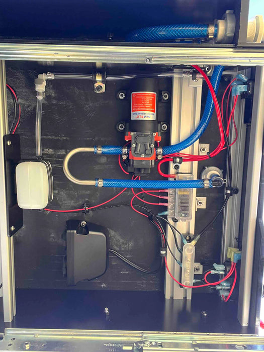 - Transfer Pump Capability (can be used to operate a tankless water heater for showering (sold separately) or transfer water from another vessel into the onboard tank)