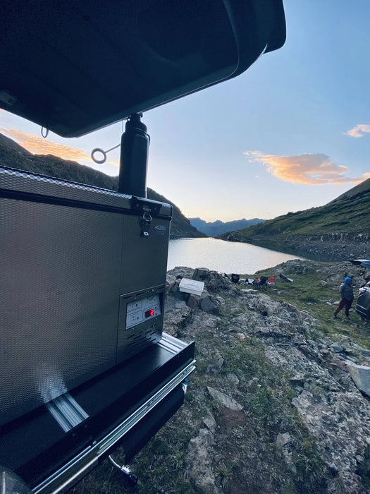 - With Refrigerator: Your two best options are: 1) A dual battery system for your vehicle. We can provide you with a Hardwire Kit for your CargoKitchen to connect it directly to an auxiliary battery. 2) The unit can be powered from a Portable Power Station. We will provide you with a Portable Power Station Installation Kit with all the necessary cables. When researching a Portable Power Station pay close attention to the 12v ports used on the station. They must be rated for 25amps minimum to operate the entire CargoKitchen and fridge from one connector. We recommend the GoalZero Yeti 1500X. It comes with two High Output 30amp Anderson Connectors that will pug directly into your CargoKitchen. There are other portable power stations that are compatible on the market, again you need an Anderson Type Connector (Google it) rated for 25amps, and please contact us with any questions.