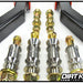 For the best performance and to achieve the full amount of travel you must purchase our spec built shocks or have them custom built based on our coil over spec sheet. You may also use Tacoma OEM replacement coil overs (King, Fox, Icon) with 600lb springs and 1.5” wide lower eyelet spacers with ½” mounting holes. These shocks will work but limit the amount of wheel travel. The OEM replacement coil overs include reservoir mounts that may not be compatible with our double shear kit option. Our long travel kit is also tabbed to accommodate bypass shocks.  The bypass shocks will allow for superior suspension dampening and tunability. To mount the bypasses we offer a weld on bypass shock hoop kit (DK-811910) that can be purchased separately. The bypass shock hoop kit requires welding and modifications to the frame. For extreme off-roading the kit has the ability to accept bump stops along with the coil overs and bypasses. The use of bump stops will alsorequire welding and modifications to the frame.