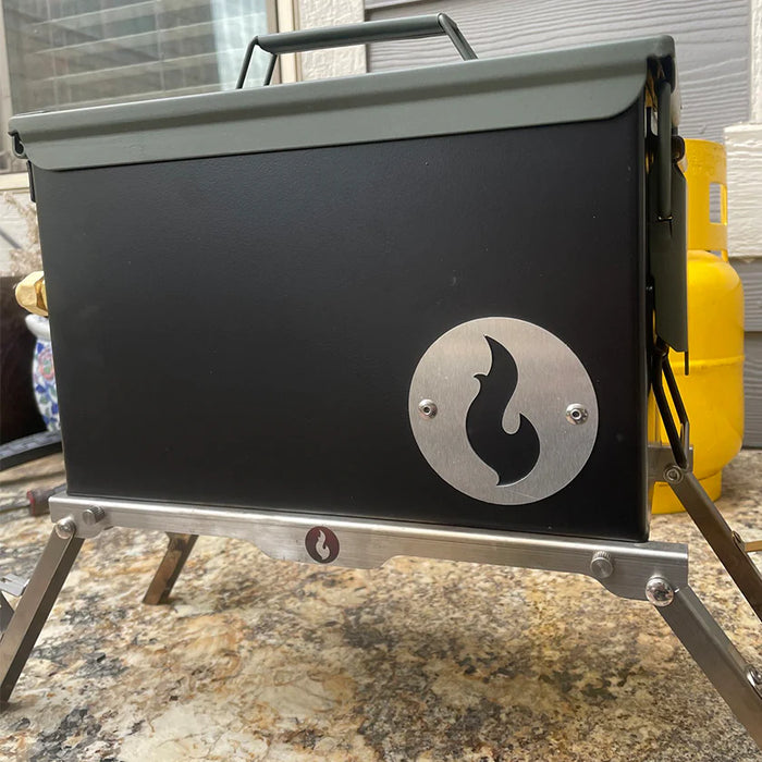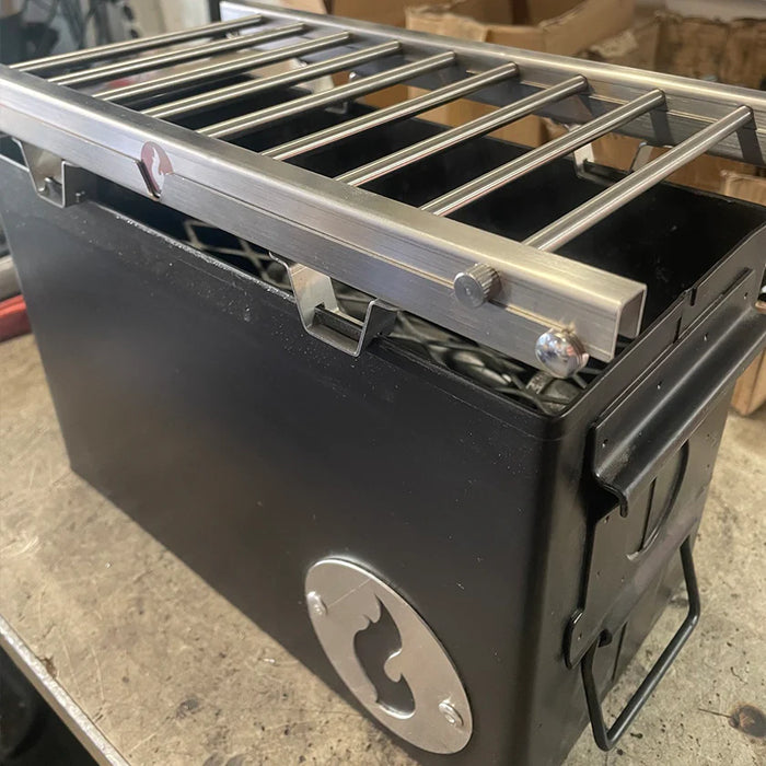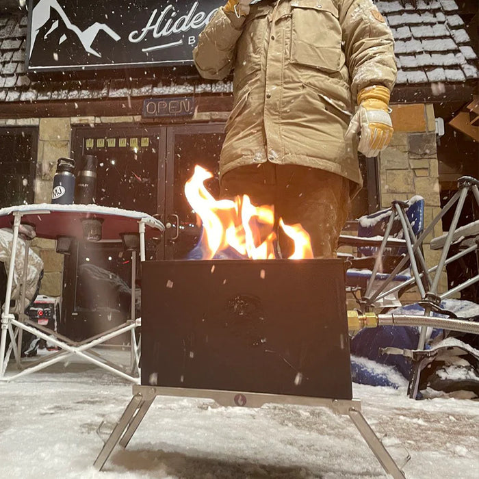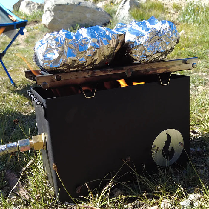 This handy 2 in 1 outdoor cooking solution merges a tabletop gas fire pit LavaBox and an Over/Under grill thingy, perfect for cooking up a feast no matter where you are. Even better, it all fits into one convenient range bag for traveling.