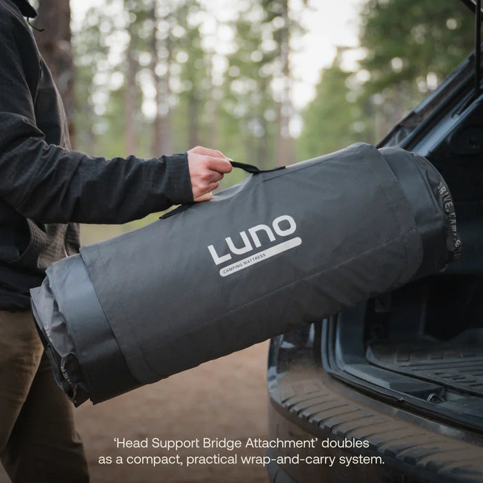 The AIR+FOAM PRO Camping Mattress is our comfiest, most versatile sleep system ever. Designed to fit seamlessly in your tent or trunk, it’s easy to switch up where you sleep. The rectangular shape fits any tent, while our revolutionary, patented Head Support Bridge Attachments turn your backseat into a bed in seconds. This mattress is any camper’s dream sleep system.