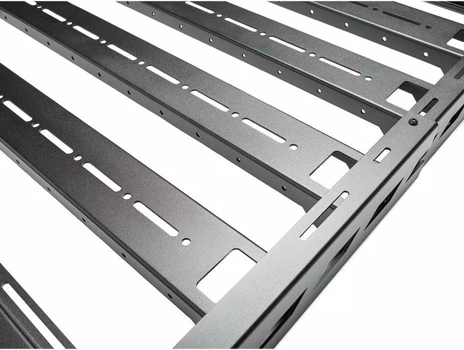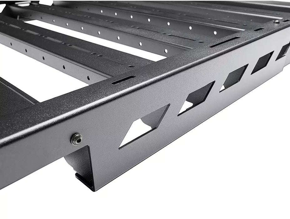 Boost your vehicle’s cargo capacity with N-FAB’s Universal Roof Rack, offering sleek, low-profile styling, robust construction, and adjustable design to suit practically any application. The N-FAB Universal Roof Rack features stout aluminum construction, promoting the strength and rigidity required to support 180 pounds. N-FAB treats the rack’s aluminum components with a corrosion-resistant textured black powder coat finish. The finish—paired with the rack’s low-profile design—provides sleek, subtle styling. With a unique, adjustable design, the N-FAB Universal Roof Rack accommodates most applications—including those with OEM or aftermarket crossbars. Adjust the rack to any length between 24 and 41 inches, ensuring balanced aesthetics, compatibility with roof antennas and accessories, and plenty of space for your cargo. Additional features include integration with N-FAB’s Multi Mount lighting system (pre-installed, universal mounting tabs) and integrated tie-down anchors, which allow you to easily secure ropes, ratchet straps, and bungees. The N-FAB Universal Roof Rack offers a simple, no-drill installation on most applications. Its universal brackets are compatible with most OEM and aftermarket crossbar systems. N-FAB is a RealTruck® brand. When you order the Universal Roof Rack or any other N-FAB product from us, you deal directly with the manufacturer. We back each N-FAB Universal Roof Rack with a limited lifetime structural and 5-year finish warranty.