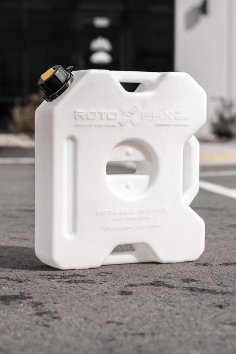 The Roto-molded Water can is  designed to be durable with thicker walls and stronger construction, making it leak-proof.  With a sure seal gasket to guarantee your spout won't leak or vibrate loose, you can rest assured your Rotopax will remain sealed while riding turbulent trails. Rotopax is the only rotationally molded EPA and CARB compliant container available for sale in the United States. This is thanks to a patented three layer Roto-Molding process, along with specialty formulated plastic barrier material to meet the government's new extremely low permeability requirements.